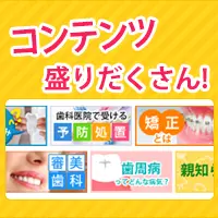豊富な情報が掲載された全国の歯医者さんリストから、あなたの希望の歯医者さんを見つけることができます。また、歯に関してのQ&Aコンテンツや、治療に関する基礎情報により、歯の知識をみにつけ、あなたに合った歯医者さん探しを徹底サポートします。